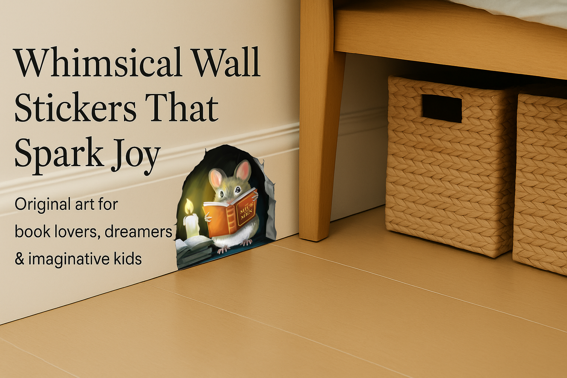 Absolutely adorable decal that brought immense joy to my child when she discovered where I inconspicuously placed it in her bedroom. She had me further investigate the artists website for other mice decals and was very impressed by the artistry and fun imagination.
