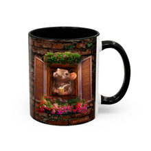 This listing is for a charming 15oz mug featuring an adorable mouse standing at his mouse home window, sipping coffee or tea. This delightful design is perfect for coffee-loving homes and makes a unique and sweet addition to any kitchen or coffee shop.